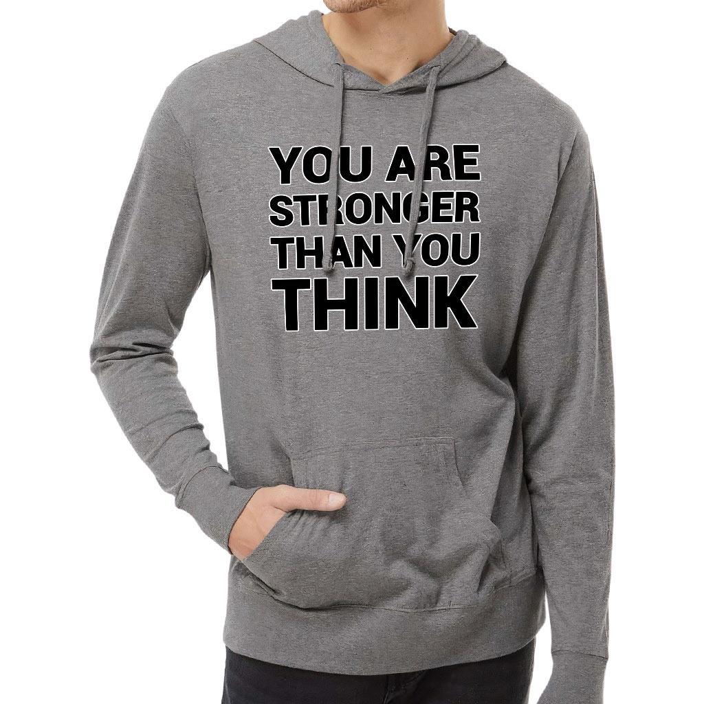 You are Stronger Than You Think Lightweight Jersey Hoodie works easily with a variety of outfits and is perfect for pairing with shorts, jeans, sneakers, and more. Suitable for summer, spring, autumn, and winter.