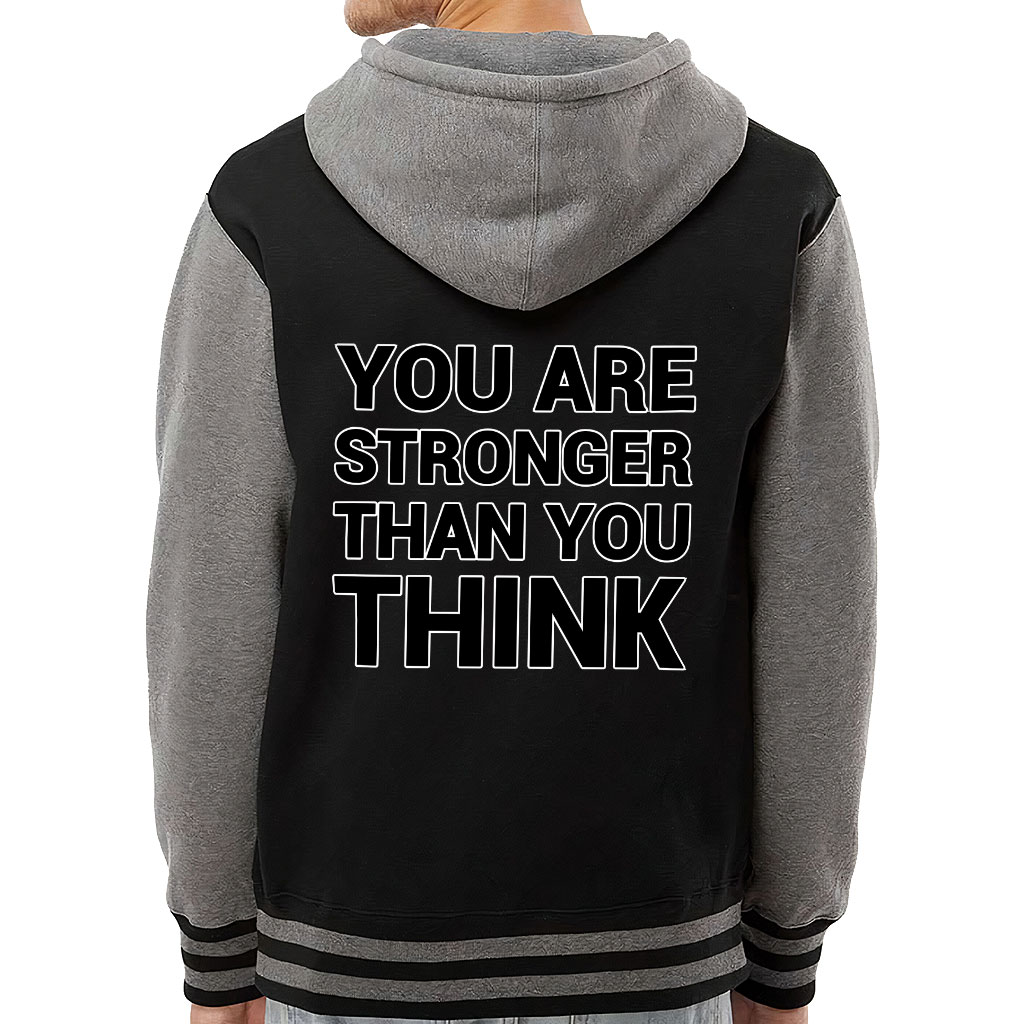 You are Stronger Than You Think Varsity Hoodie – Art Zip Hoodie – Print Hooded Sweatshirt