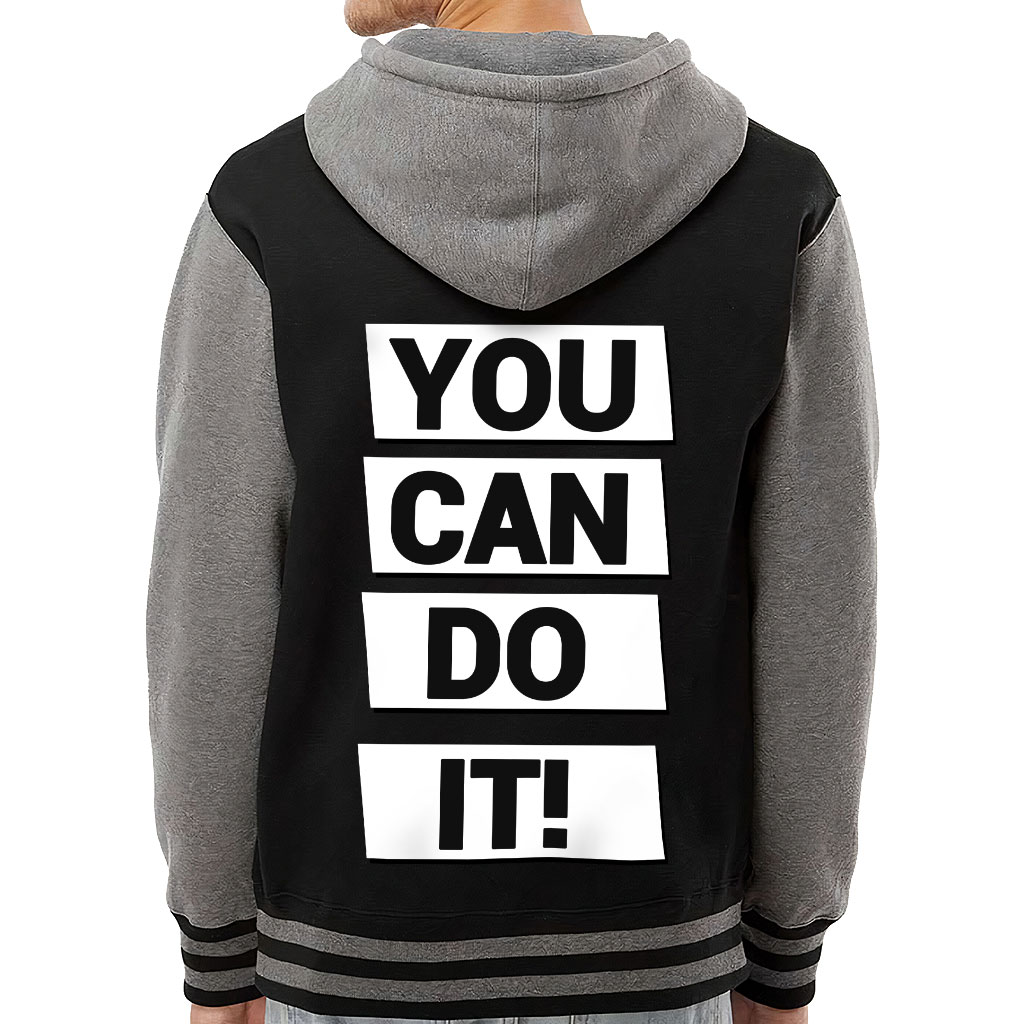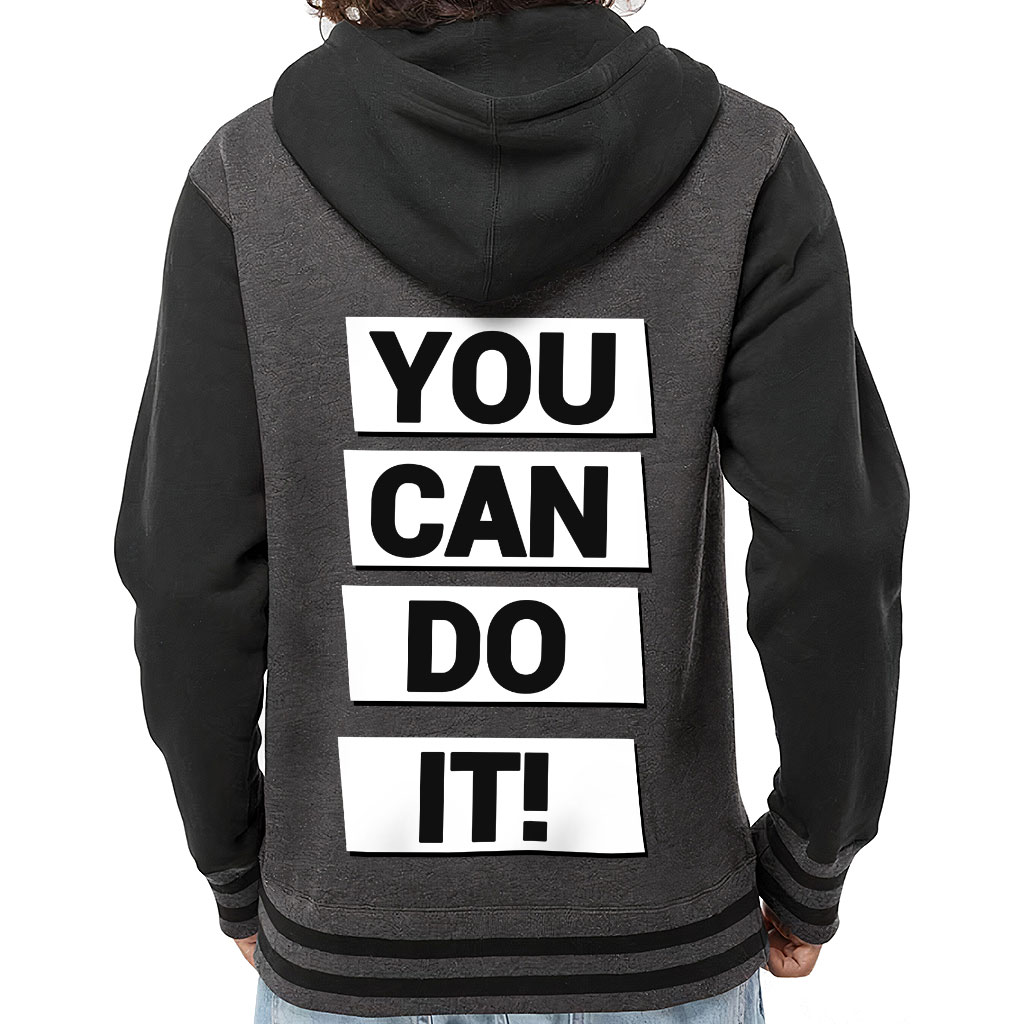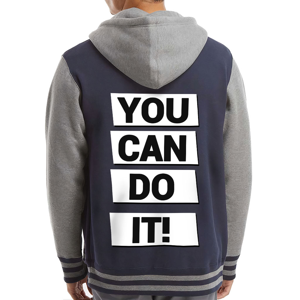 An essential closet staple, You Can Do It Varsity Hoodie is a go-to classic for hiking, training, or just kicking back. Pair it with your favorite shorts, athletic pants, jeans, or any pants you like.